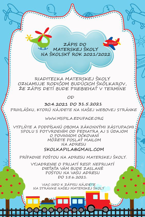 Zápis detí do materskej školy na šk. rok 2021/2022