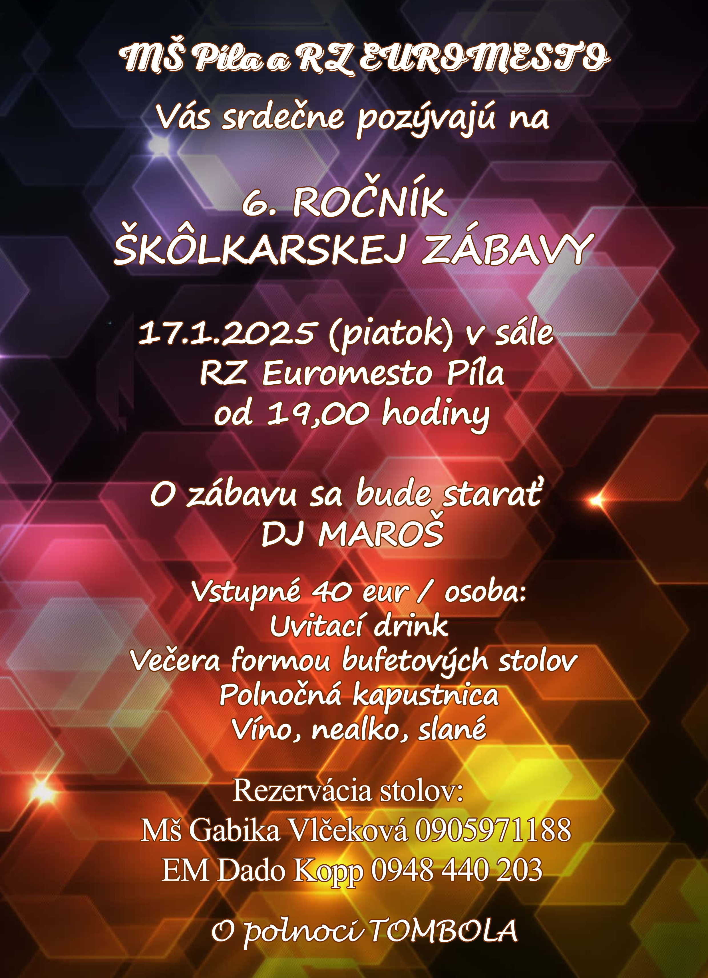 17.1.2025 od 19:00 v sále RZ Euromesto Píla